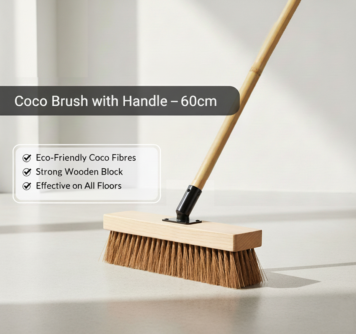 Keep your floors and outdoor spaces clean with the Coco Brush with Handle (60 cm), designed for effective scrubbing and long-lasting performance. Made with strong natural coco fibers, this brush easily removes dirt, mud, and grime from a variety of surfaces.
