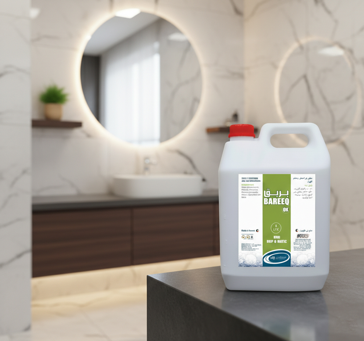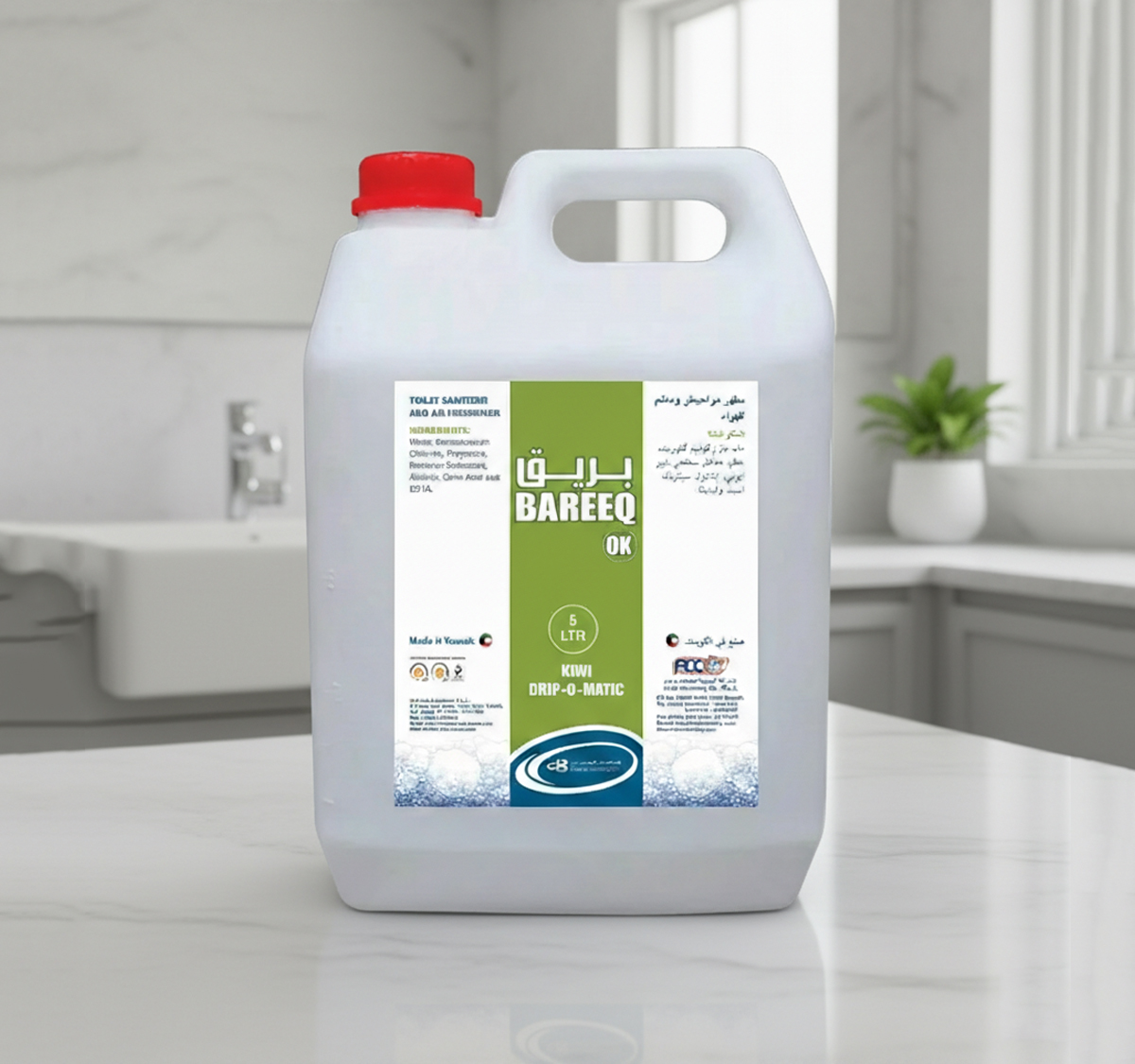 • Bareeq Ok Dripomatic Fluid: This is a sanitizing concentrate manufactured in Kuwait, designed for heavy-duty cleaning and freshening of surfaces.