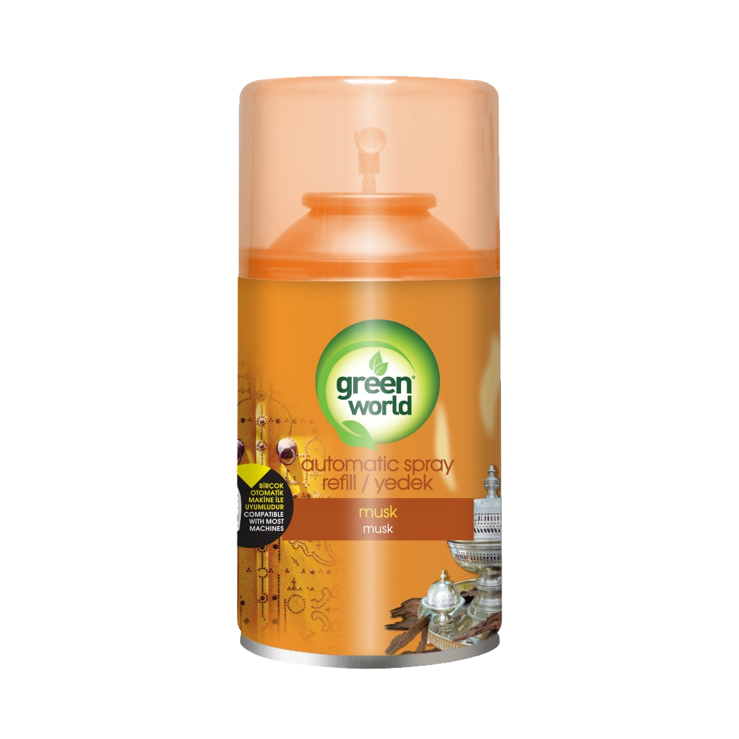 for use in both homes and offices. From cleaning products that ensure a hygienic environment to long-lasting home fragrances, Green World combines effectiveness with sustainability. Its air fresheners leave every corner of your home and office smelling fresh, while its environmentally friendly formulas provide safe and powerful cleaning. Experience the power and purity of nature with Green World. The product range includes air freshener sprays, reed diffusers, automatic refill sprays, colognes, furniture polish, and aerosol cleaning products for glass, carpets, stoves, bathrooms, and toilets.