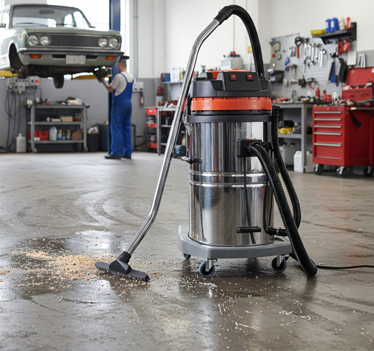 Effortlessly switches between vacuuming liquids and dry materials — perfect for construction dust, metal shavings, sawdust, water spills, and more.
