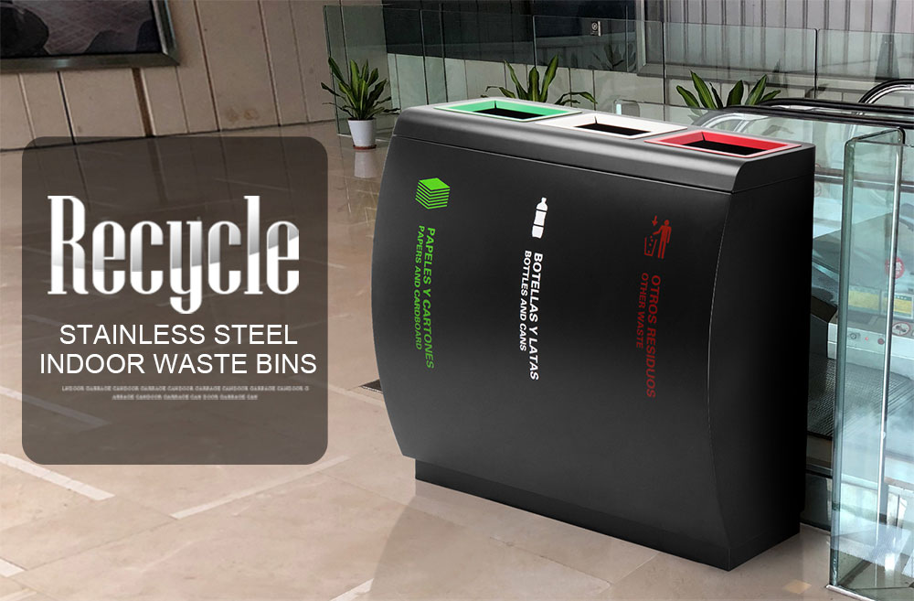 Indoor Black Powder Coated Classification 3 Compartment Recycle Waste Bin For School